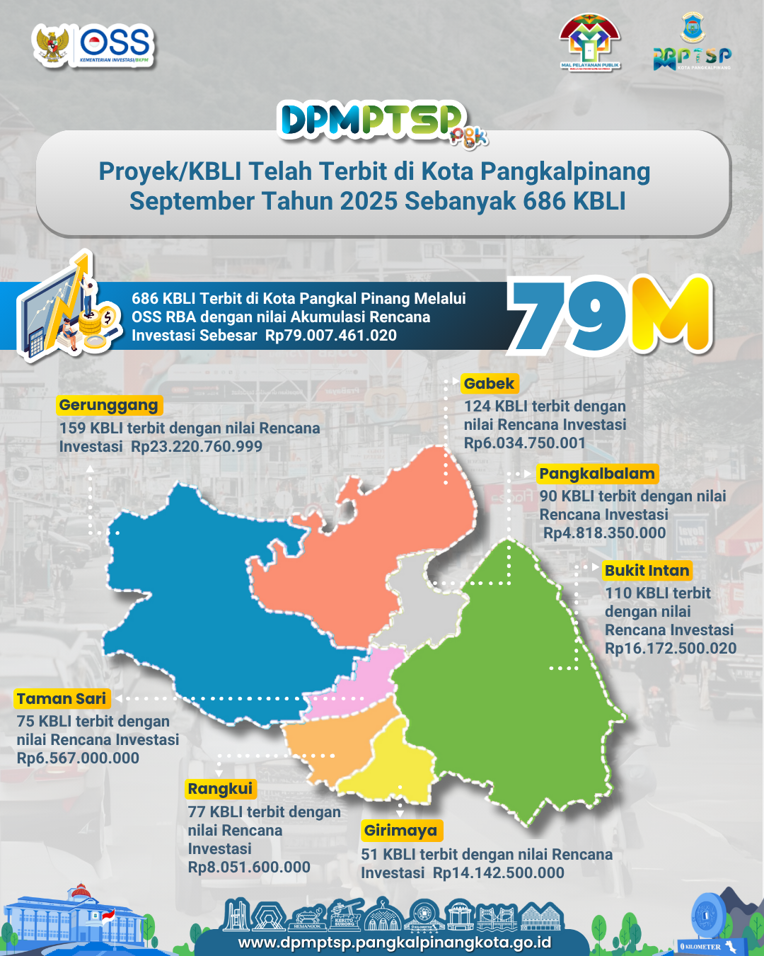 Capaian gemilang ini didorong oleh terbitnya 686 Kode Baku Lapangan Usaha Indonesia (KBLI) di Kota Pangkal Pinang melalui sistem perizinan berbasis risiko, OSS RBA, sepanjang September 2025. Angka ini menegaskan tingginya minat dan kepercayaan investor terhadap iklim usaha yang kondusif, transparan, dan terintegrasi di Ibu Kota Provinsi Kepulauan Bangka Belitung ini.