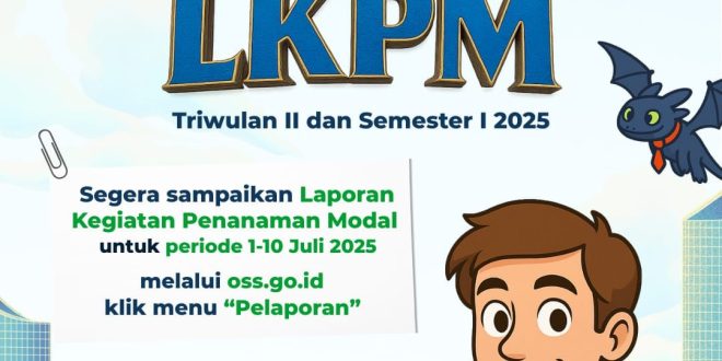 Penyampaian Laporan Kegiatan Penanaman Modal (LKPM) Priode Triwulan II Tahun 2025 dalam menu Pelaporan di aplikasi OSS RBA Indonesia di buka pada tanggal 1 Juli 2025 sampai dengan 10 Juli 2025