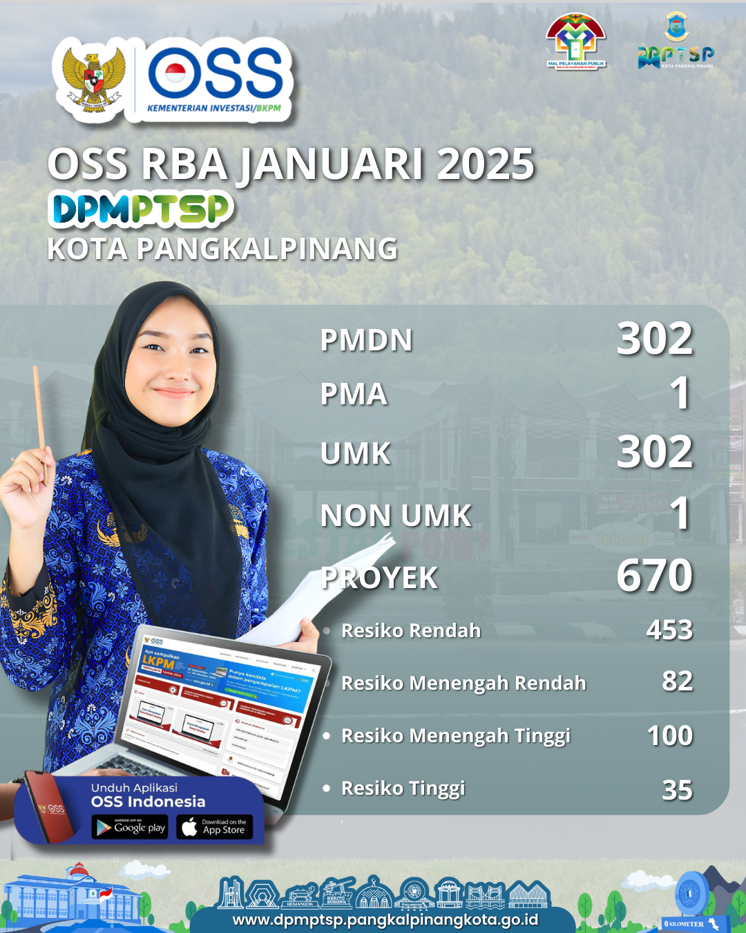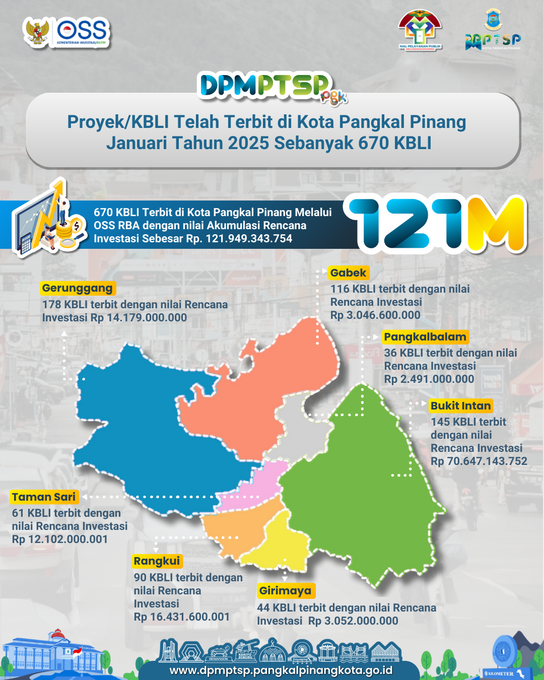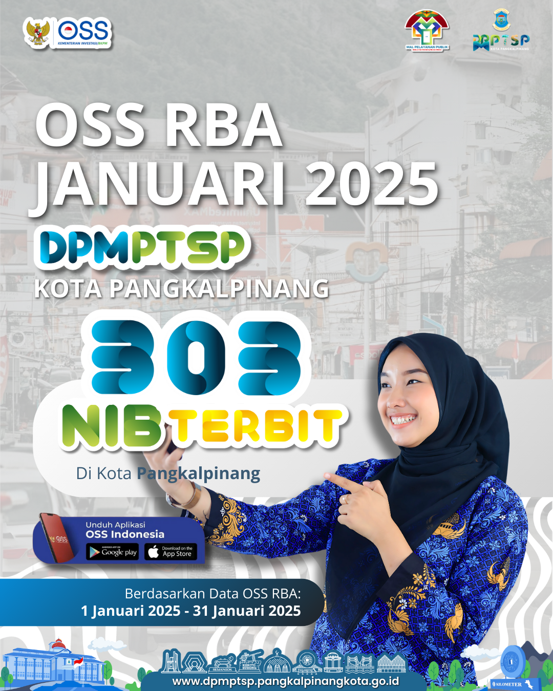 Dinas Penanaman Modal, Pelayanan Terpadu Satu Pintu Kota Pangkal Pinang Menerbitkan Nomor Induk Berusaha (NIB) Priode Januari 2025 sebanyak 303 NIB dengan rincian sebagai berikut: