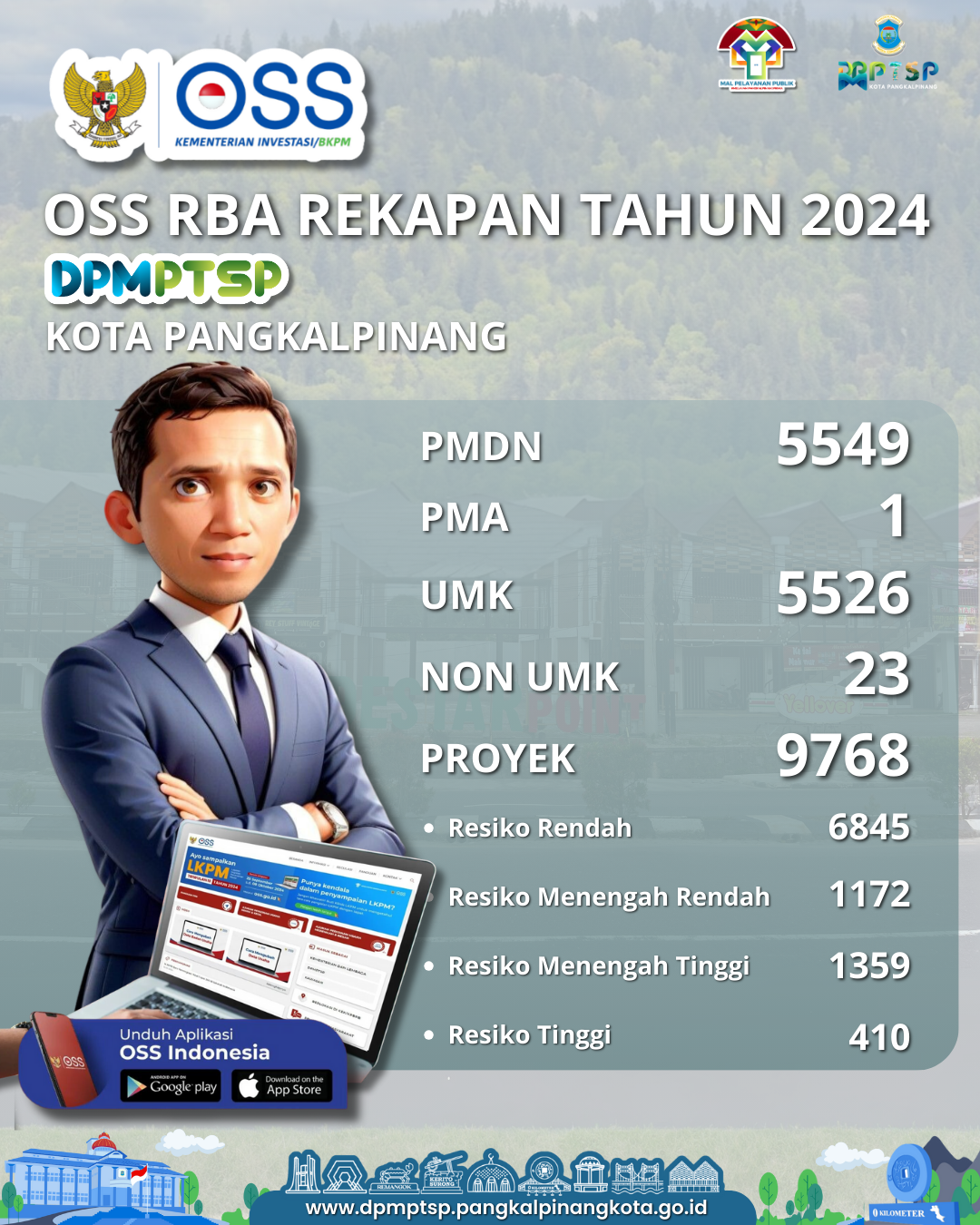 Dinas Penanaman Modal, Pelayanan Terpadu Satu Pintu Kota Pangkal Pinang Menerbitkan Nomor Induk Berusaha (NIB) sebanyak 5549 dengan rincian sebagai berikut: